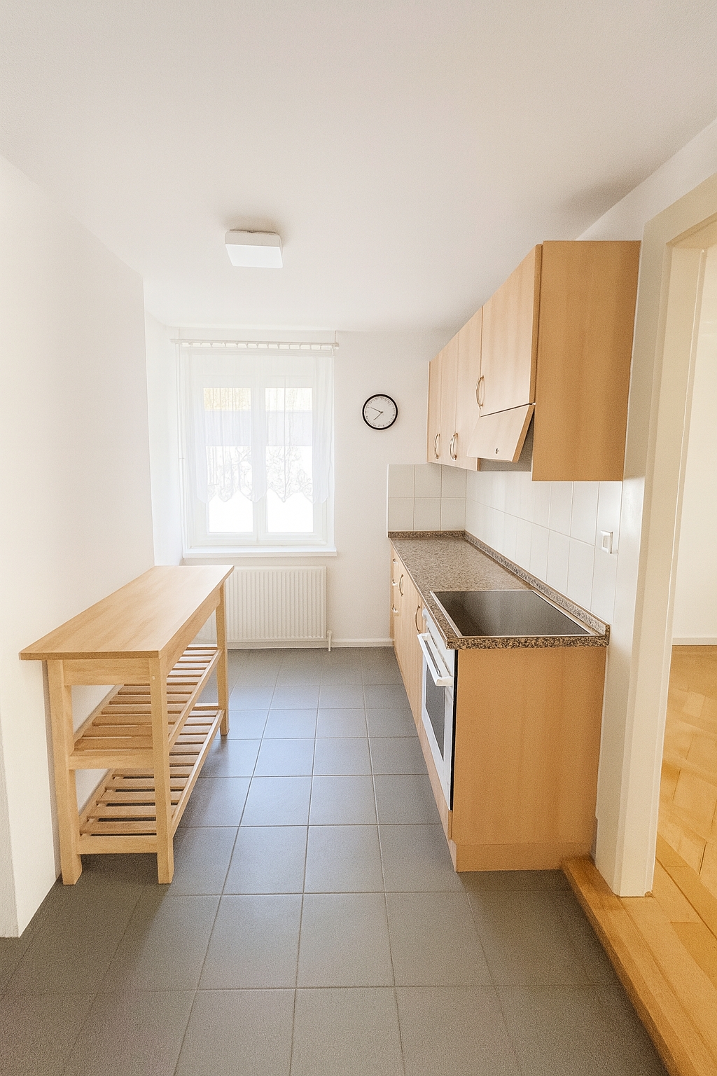 - Küche mit Herd, Backofen und Kühlschrank