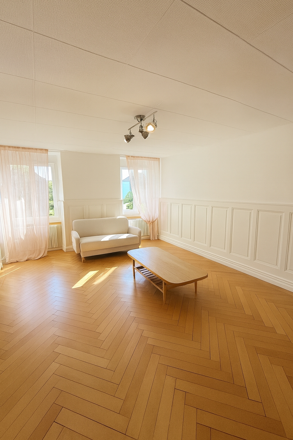 - Fischgrätparkettböden in allen Zimmern
