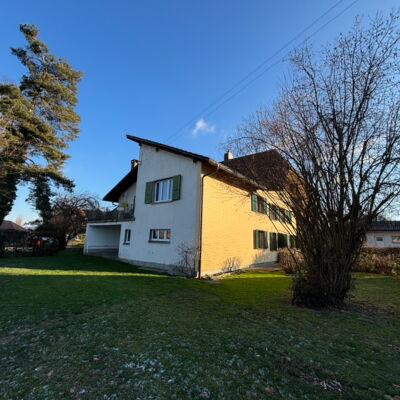 Die Umgebung präsentiert sich mit grosszügigem Vorplatz, altem Baumbestand, Sträuchern, Kleintiergehege und viel Grünfläche. Nordwestlich hat man eine wunderbare Weitsicht auf die Hügellandschaften der weiteren Umgebung und die Jurakette.
